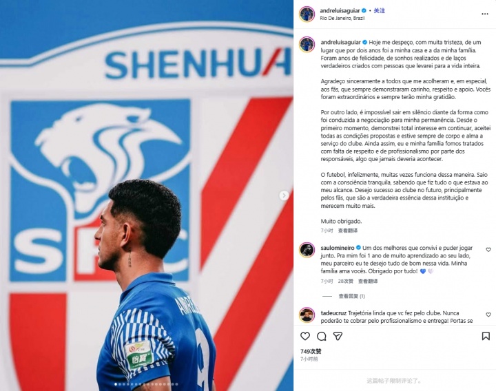 直播吧01月02日讯 申花在昨日官宣了5名球员离队,其中外援安德烈·路易斯在个人社媒发文,炮轰申花俱乐部的谈判方式,并且指责俱乐部对他及其家人不尊重。